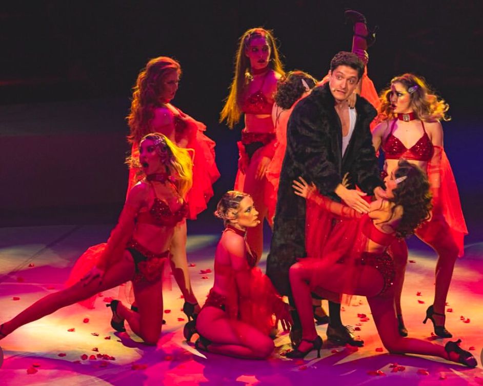 Expresia „a umple scena” este una bine-cunoscută în lumea teatrului, fiind utilizată, de regulă, într-un context pozitiv, care denotă că, prin mijloace puține, ori decorul, ori actorii au fost mai mult decât suficient pentru a nu simți lipsă de nimic. Însă, în acest caz, vorbind despre o arenă imensă de circ, am simțit că spectacolul nu a fost foarte bine adaptat la acest spațiu neconvențional, ales cu precădere din motive practice, financiare. În permanență, scenografia se rezumă doar la câteva scaune și mese care, deși mutate de colo-colo, nu aduc un element spectaculos, iar coregrafiile care ne aduc toată distribuția sub reflectoare, oricât de grandios au fost gândite și executate, tot nu reușesc să utilizeze tot locul disponibil. În plus, copilul din mine și-ar fi dorit ca, dacă tot suntem la circ, să vedem ceva specific, poate mai multe acrobații. De la cele trei roluri principale și până la cele secundare și de ensemble, prestațiile actorilor întrec orice fel de așteptare. Timp de două ore și jumătate cântă (deși mi-ar fi plăcut să-i aud complet, fără să li se închidă lavalierele la momente nepotrivite) și dansează de-și dau sufletul pentru ca spectatorul să simtă că nu lipsește nimic din această poveste. Nici dacă ai căuta cu lupa ceva în interpretările lor, nu ai avea ce să le reproșezi. Neașteptat (căci mereu e mai ușor să critici prin comparație, nu să apreciezi), față de originalul lui Marshall, această adaptare are un mare plus: pune mult mai bine în lumină personajul lui Amos, veșnic uitat sau nesemnificativ, printr-o prezență comică, dar foarte tristă.