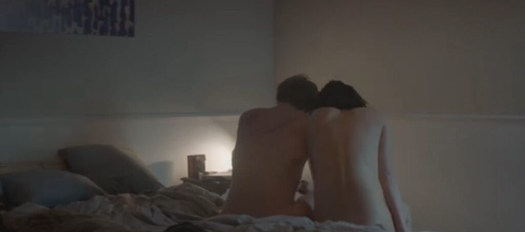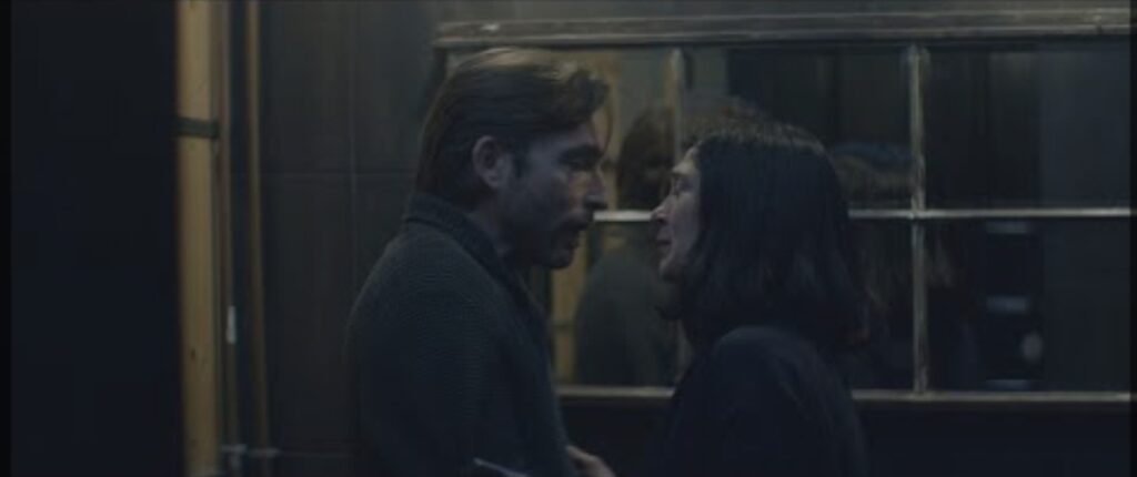 Prima parte a filmului o constituie o secvență tip „nevasta moartă” , dar în spatele camerelor de filmat. Adică Sami își înregistrează iubita-sau-poate-soția, pe Pia (Nicoleta Lefter, care duce în mod exemplar rolul, dând naturalețe unor replici care altminteri par scrise de ChatGPT) în timp ce aceasta încearcă să poarte o conversație serioasă cu el. Se face referire la o posibilă destrămare a cuplului aici, la posibilitatea unui copil, dar toate din partea ei – Sami rămâne pasiv, înregistrând tăcut, ca un fel de operator de imagine în filmul în care trebuia să fie personaj. „Oprește camera aia că dau cu ea de perete” îi spune iubita privindu-l peste umărul dezgolit. El nu spune nimic.