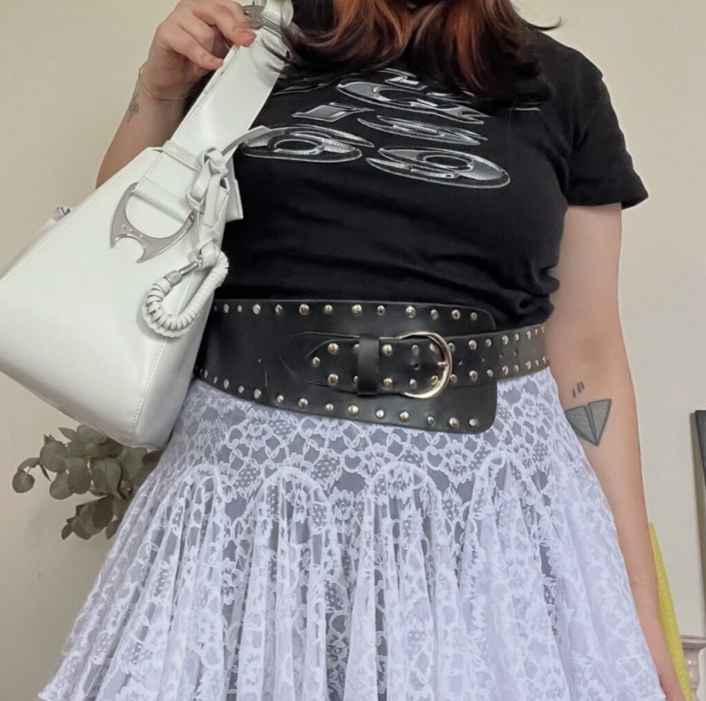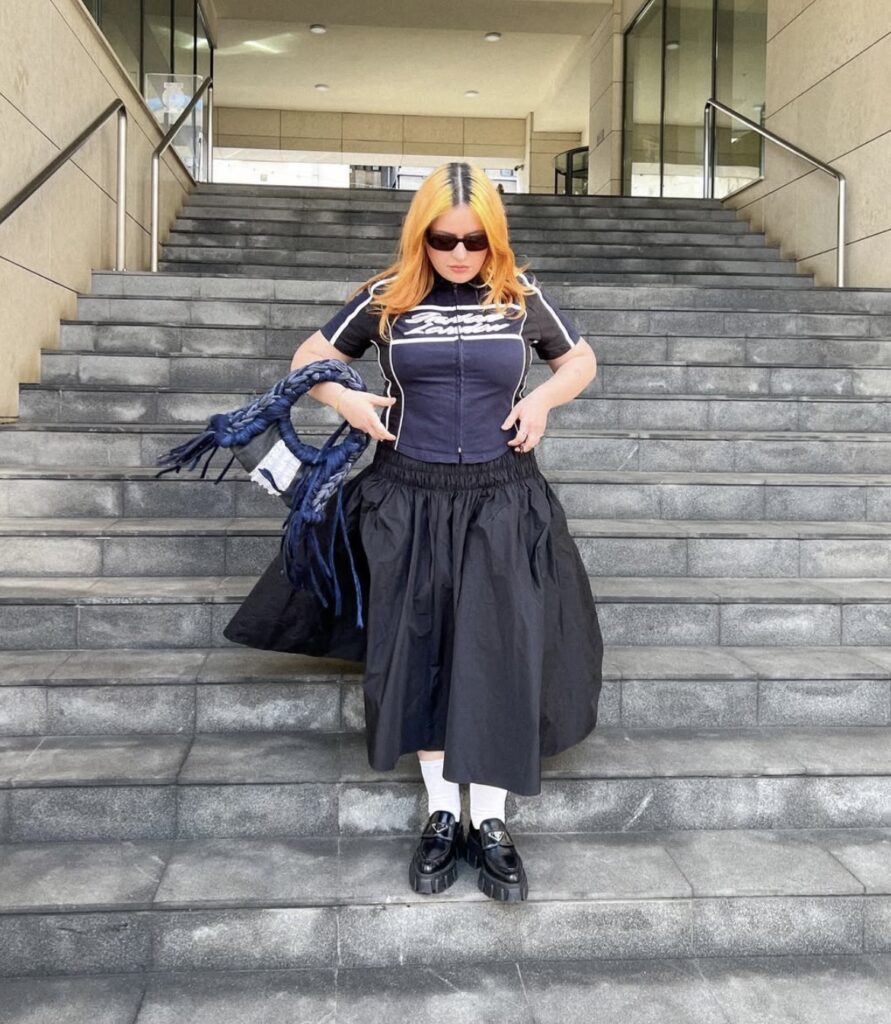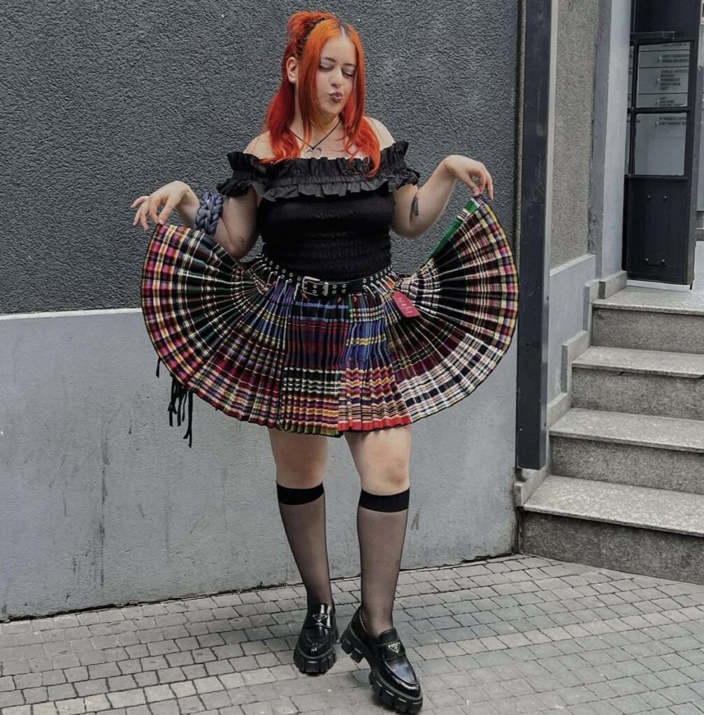 „Aș încuraja oamenii să își găsească stilul, nu cumpărând din fast fashion, ci cumpărând de pe Vinted, de pe site-uri de resell, de la târguri. În magazine totul este făcut să arate frumos, toate sunt împărțite pe categorii, ai secțiunea mai goth, secțiunea mai fresh girl, dar așa când te duci și îți cumperi lucruri absolut random o să vezi că cauți ceva mult mai specific. Începi să-ți cumperi o rochie de bal și te gândești la lucruri destul de specifice, ce culori îți plac, ce lungime vrei, asimetrică sau cu corset, față de a intra în magazin și de a zice că sunt toate frumușele și a te ghida mai mult după preț. Sper ca oamenii să facă mai mult lucrul ăsta și să play dress-up, să se distreze mai mult cu hainele pe care le au și pe care le poartă, să se gândească nu neapărat ca și cum nu sunt different characters sau un costum diferit, dar alter egos de ale lor până își găsesc exact stilul personal.