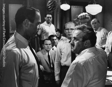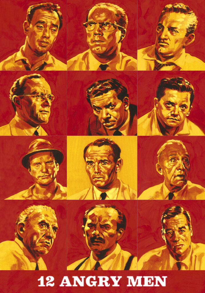 „12 oameni furioși” este un film din 1957, regizat de Sidney Lumet, care urmărește felul în care 12 jurați deliberează sentința într-un proces: oare fiul și-a omorât tatăl? Odată ajunși în camera de deliberare, majoritatea sunt convinși că vor termina repede, pledând pentru „vinovat”. Însă la vot, juratul nr. 8 este împotrivă. Apare conceptul de „îndoială rezonabilă”, care se referă la îndoiala în legătură cu vinovăția acuzatului. Astfel, este deschisă o întreagă discuție despre moralitate, adevăr, percepție și valori, fiecare fiind influențat de altceva în luarea deciziei.