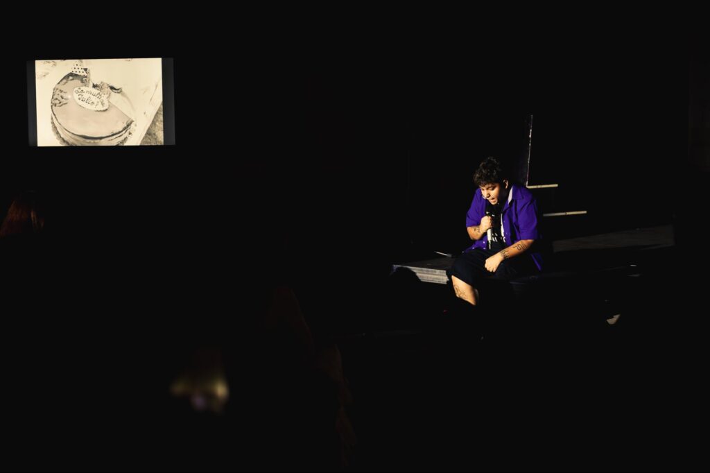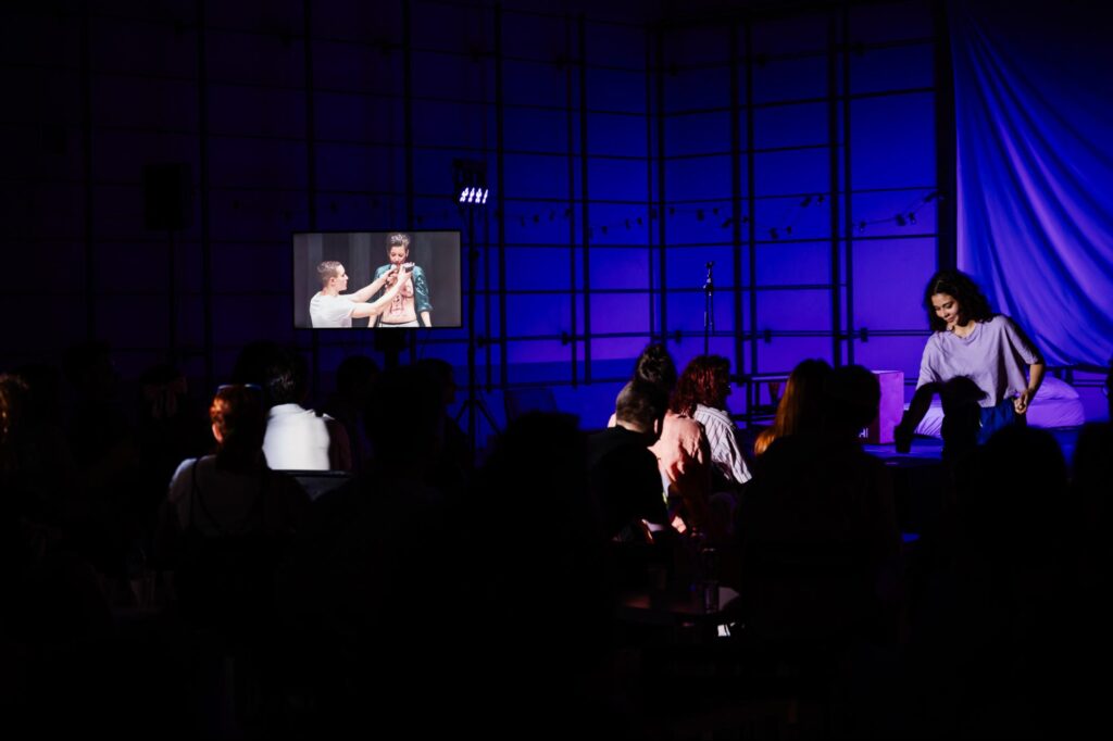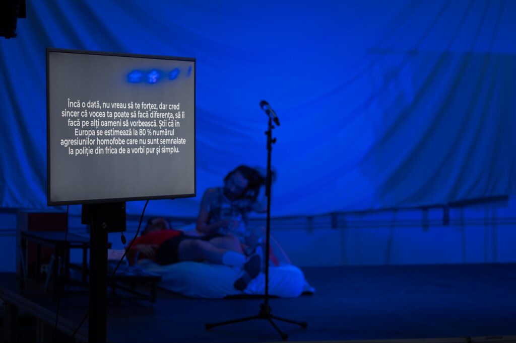 Nu e doar pentru comunitate, ci pentru un public care vine la teatru ca oricare alt public. Care are un impact mai mare în comunitate sau în afara comunității? Habar n-am, nu știu. Sincer, cred că mi-ar plăcea să aibă un impact mai mare în afara comunității, pentru că în comunitate te regăsești într-o poveste prin care ai trecut, este un fragment în text despre o fată care își face coming out-ul în fața mamei ei. După spectacolul de pe 5, când l-am jucat, am simțit cumva că s-au regăsit foarte multe persoane în momentul ăla, pentru că e un gest foarte intim pe care-l faci, mai ales față de un părinte. Mai ales față de mama ta, să-i spui că „eu sunt un pic diferită de cum mă vede societatea”. Nu e neapărat ușor, mai ales că părinții noștri au 40 de ani, aproximativ, și vin din comunism.