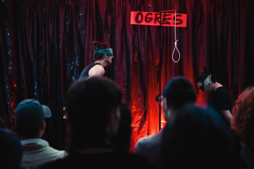 Și așa am ajuns să montez „Căpcăuni”. De asta m-am bucurat că am putut să o fac în cadrul Pride. Asta, pe mine, în momentul ăsta în care sunt, în care nu am o diplomă de regizor care să-mi ateste faptul că pot să montez undeva, orice spațiu în care pot să montez un spectacol sau să fac un performance e foarte bine venit. Și mai ales venind și într-un cadru unde mă loveam direct cu comunitatea, adică aduceam spectacolul ăsta direct în brațele comunității. Nu e doar pentru comunitate, pentru că să vezi niște oameni oprimați sau să vezi că niște oameni nu se pot iubi sau cazuri de hărțuire sau chiar de crimă asupra unui om care nu ți-a greșit ție cu nimic, funcționează oricum. Nu mi se pare că ar trebui să fie un spectacol doar pentru persoane din comunitate. Așa s-a născut „Căpcăuni”, din această nevoie a mea de a spune poveștile astea Și mi s-a părut foarte important să-l fac în Timișoara, în 2024, mai ales în cadrul Pride.