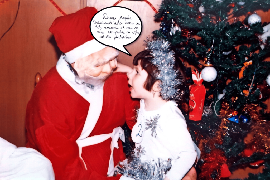 Crăciunul ăsta vreau ca toți oamenii să nu se mai comporte ca niște adulți plictisitori. Vreau să stea la masă unii cu alții, vreau să râdă împreună. Pentru mine, îmi doresc ca soră-mea să mă enerveze din nou cu întrebarea „Nu vrei să ne uităm și noi la un film de Crăciun?”. Vreau ca oamenii să nu mai lucreze așa mult. Inclusiv eu. Vreau să-mi iau relația cu soră-mea de unde am lăsat-o în copilărie. Vreau să o văd pe bunica. Vreau ca unchiul să-mi spună glume și că ține la mine. Vreau ca tata să citească măcar textul acesta. Mama să-mi spună că scriu frumos și să-mi dea o îmbrățișare. Mai vreau să fiu copil și să-i am pe toți în jurul meu. Am fost prea mult adult și am pierdut oameni și conexiuni. I-aș vrea pe toți în jurul meu, să ne îmbrățișăm colectiv și să-mi spună că anul acesta am făcut tot ce a fost mai bine pentru mine, ca să pot fi aici, acum.