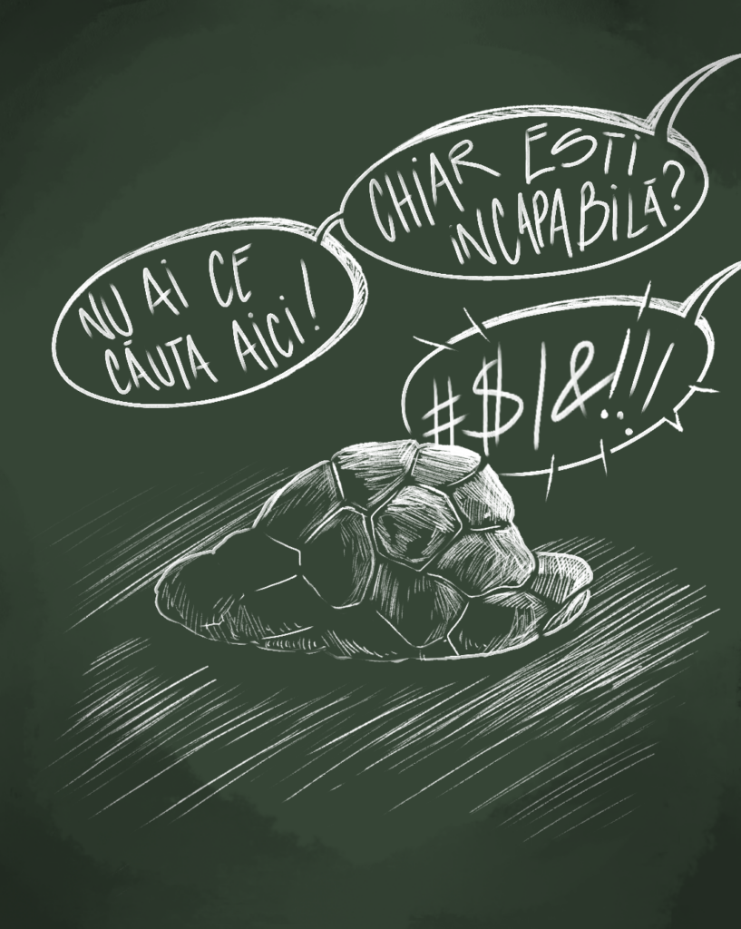 Cum a fost așa ceva posibil? Simplu. Cum spuneam, sunt înaltă, am aproape 1,80. Antrenorii mereu au văzut un potențial în mine datorită (sau mai degrabă „din cauza”) înălțimii mele. La început, antrenorul cu care am făcut inițierea a cultivat pasiunea pentru volei în mine. Mergeam cu drag, abia așteptam să ies de la ore ca să fug la antrenament. După ce am schimbat grupa și am ajuns la performanță, totul s-a schimbat în rău. Am avut alți antrenori și alte colege, era un colectiv deja format și a fost pentru prima oară când am simțit că eșuez în a mă adapta. Ei au avut pretenții mari de la mine, pretenții pe care niciodată nu le-am putut satisface. Nu pentru că nu mi-aș fi dorit, am dat tot ce am avut mai bun din mine. În ciuda calităților sportive pe care le aveam, am demonstrat de nenumărate ori că nu sunt făcută pentru o carieră în voleiul de performanță. Pentru antrenori, totul se învârte în jurul unor interese: participarea clubului la campionatul național și vânzarea jucătoarelor de perspectivă unor cluburi de elită. Nu am fost suficient de talentată încât să mă poată vinde la o echipă de liga întâi, nu am avut musculatura dezvoltată cum se presupunea că trebuie să o am (mai dificil la 50kg…) și nici emoțional nu am fost pregătită. Ca orice copil din acel club, am fost sensibilă și nu o să uit niciodată cat de ușor reușeau antrenorii mei să facă sportivele să plângă doar din câteva vorbe. Umilința era la ordinea zilei. Simțeam că oricât aș încerca, am o barieră psihică care mă ține departe de orice obiectiv pe care vreau să-l ating. Și îmi doream atât de mult să progresez, dar într-un punct, corpul a spus „NU”.
