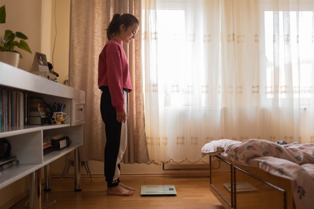 Mă cântăresc în fiecare dimineață. Dacă am cu 400 de grame mai mult decât în ziua precedentă, sunt anxioasă. Dacă am mai puțin, sunt mândră de mine. La ședințele de terapie, realizez cum mă autosabotez și cât de dură sunt cu corpul meu. Asta îmi provoacă vinovăție pe care o liniștesc tot prin înfometare.
