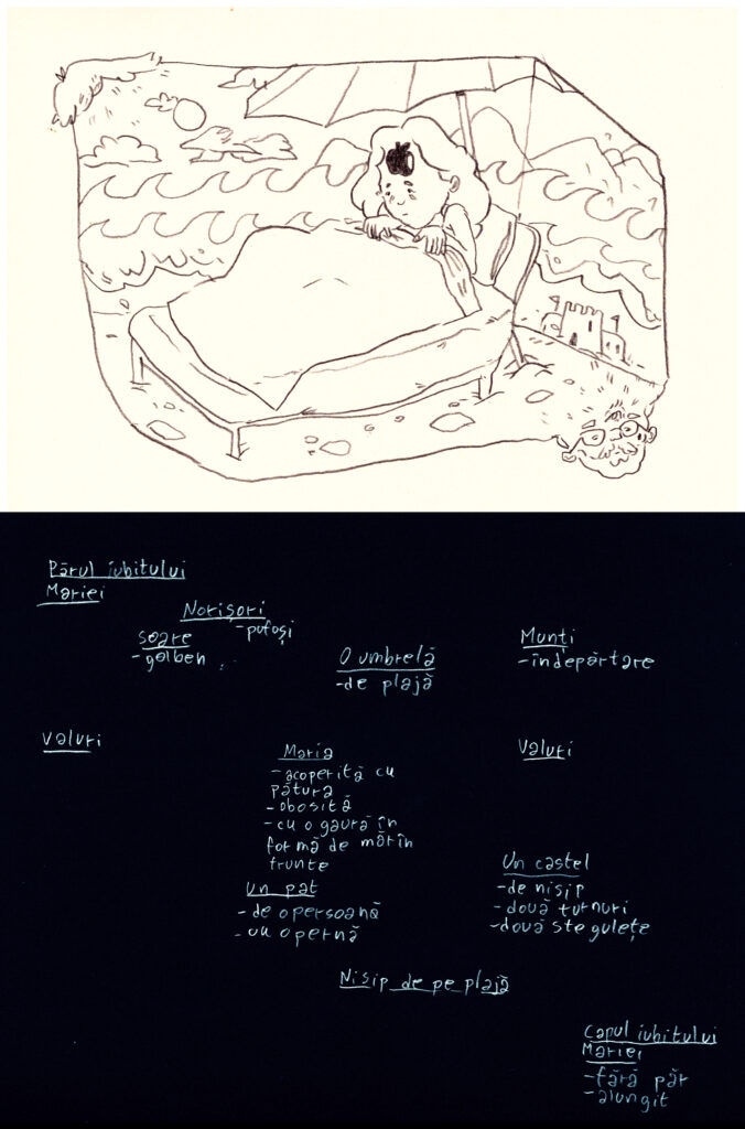 Când eram în generală, la ora de desen, profesoara noastră obișnuia să ne pună muzică la radio și ne încuraja să desenăm ceea ce vedeam, atunci când ascultam instrumentalul. Niciodată nu reușeam să desenez din mintea mea. Mereu mi se părea că am o idee vagă, iar apoi, când o puneam pe foaie, era ceva complet diferit. Am început să colorez doar fundalul, într-o culoare deschisă, cât eram la școală, iar desenul să-l finalizez acasă, cu o imagine de referință, căci altfel îmi era imposibil. Încă îmi aduc aminte de o dimineață în care tema era viața acvatică. Colega mea de bancă desena o sirenă, iar eu nu mai țineam minte cum arăta un pește, așa că am copiat trăsăturile sirenei de la ea. S-a supărat pe mine. Nu aveam cum să-i explic de ce făcusem asta, căci nu știam nici eu.