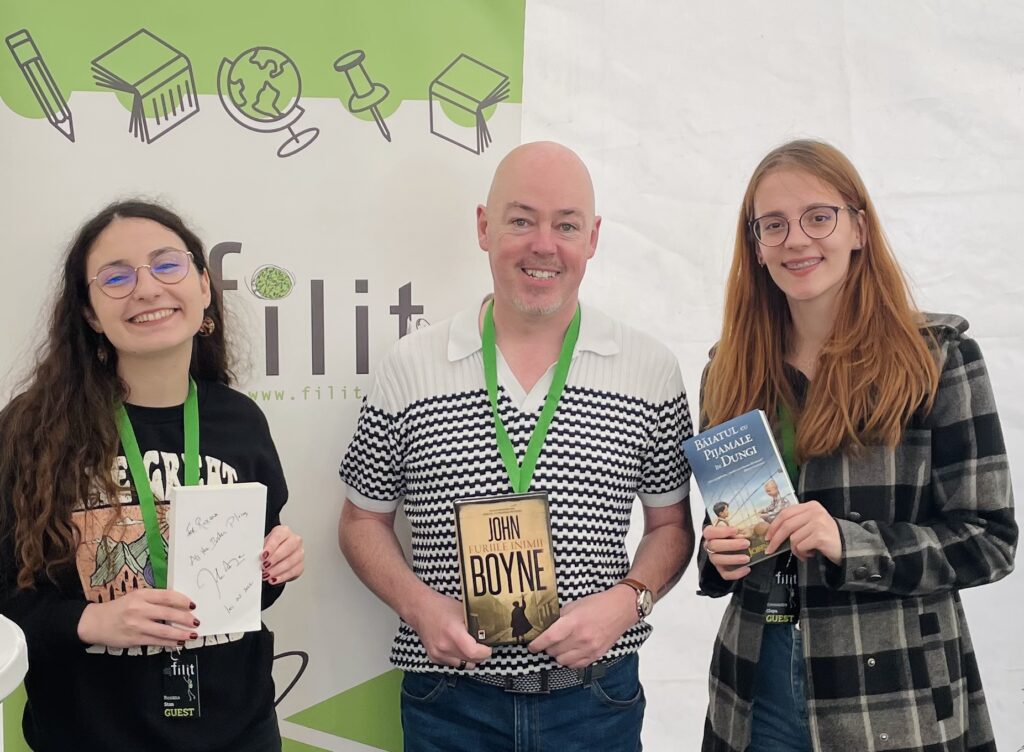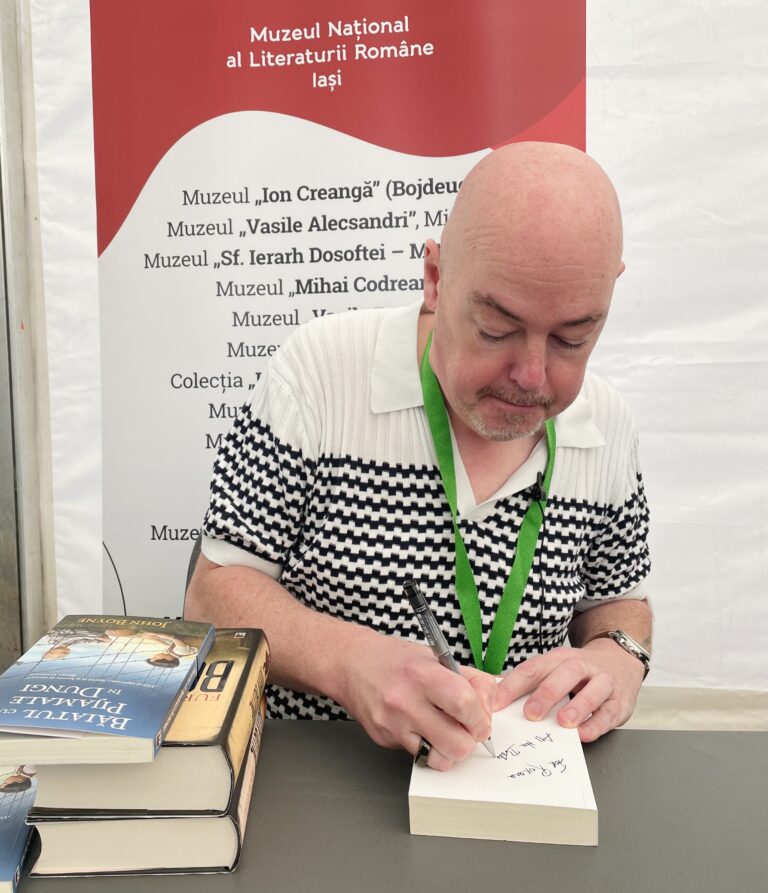 L-am întâlnit pe John Boyne la Casa FILIT, într-un spațiu dedicat interviurilor, unde ne-a vorbit despre momentul în care și-a făcut coming out-ul în fața părinților, despre J.K. Rowling, despre social media și criticile care i-au fost aduse pentru cartea „Numele fratelui meu este Jessica”, dar și de ce ar trebui ca adolescenții și tinerii să-i citească romanele. Cea mai recentă carte a sa, „Ruinele timpului”, a apărut în luna octombrie, la editura RAO, și este continuarea bestsellerului „Băiatul cu pijamale în dungi”.
