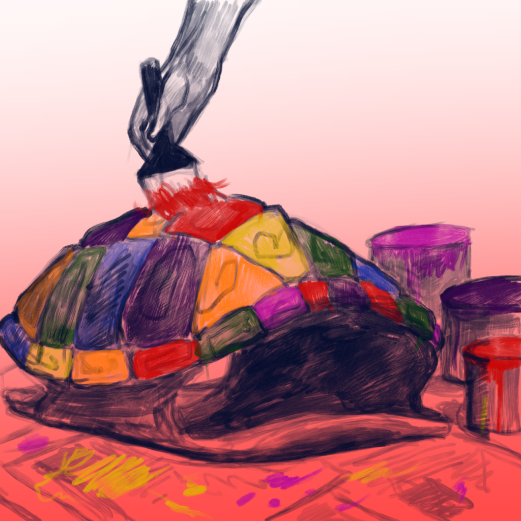 Aș vrea să fiu mai deschisă, mai volubilă, mai „cu tupeu”. Aș vrea să spun: „Am fost la Pride în fiecare an și m-am simțit bine. Am fost la picnicul organizat de Accept de Ziua Vizibilității Lesbienelor și am vorbit cu oameni. Am urcat în autobuz și am ajuns la seara de Queer Poetry Open Mic. N-am avut emoții. Nu, nu mi-a fost rușine. Da, am ieșit din carapacea în care stau zi de zi. Mi-am vopsit carapacea în culorile curcubeului și am pus-o pe perete.