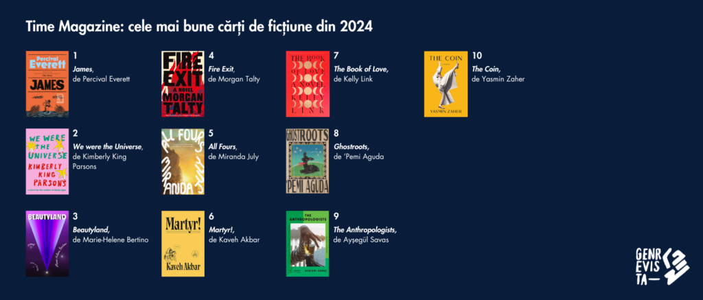 Lista cu topul celor 100 de noi apariții din acest an nominalizate de Time Magazine poate fi citită aici, iar topul celor mai bune cărți de ficțiune scrise în acest an aici.