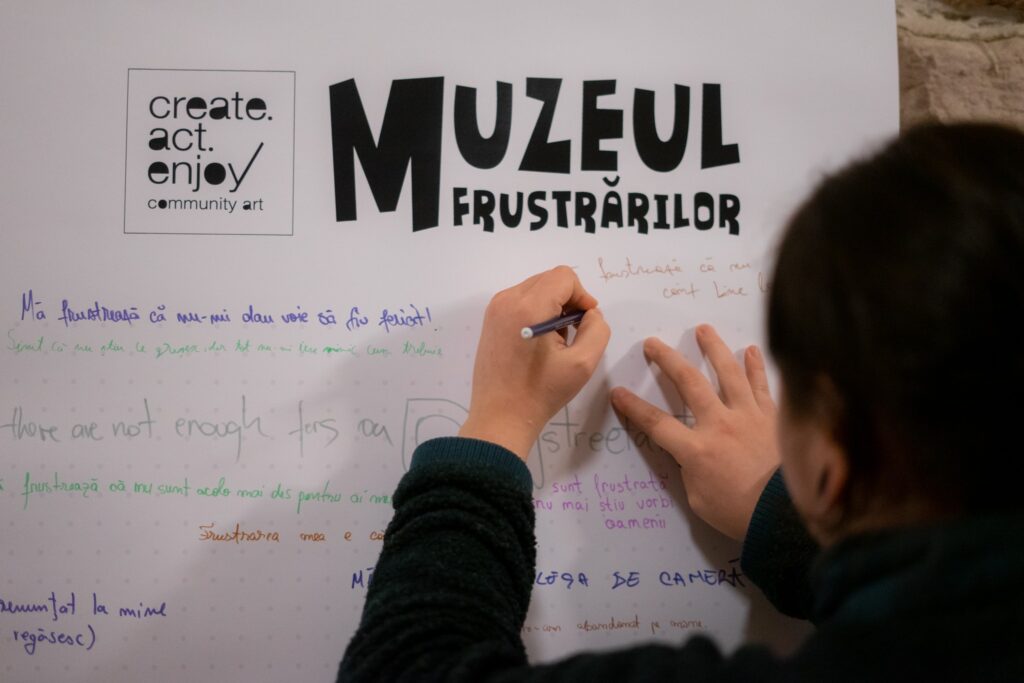 Care e legătura cu instalația artistică de la Muzeul Frustrărilor (organizat de Create. Act. Enjoy) ? În fapt, vorbim despre același lucru – capacitatea frustrărilor aparent banale de a ne dărâma și felul în care ne putem împăca cu ele. Nu aveam niște așteptări anume, odată ajuns la fața locului. Bine, poate una, să nu fie multă lume. A fost. Văzusem ceva poze din „making of”, dar nu erau spoilere. În fața Casei TIFF, în Cluj, era o coadă apreciabilă. Se făceam deja glume despre prima frustrare, aceea de… a sta la coadă.