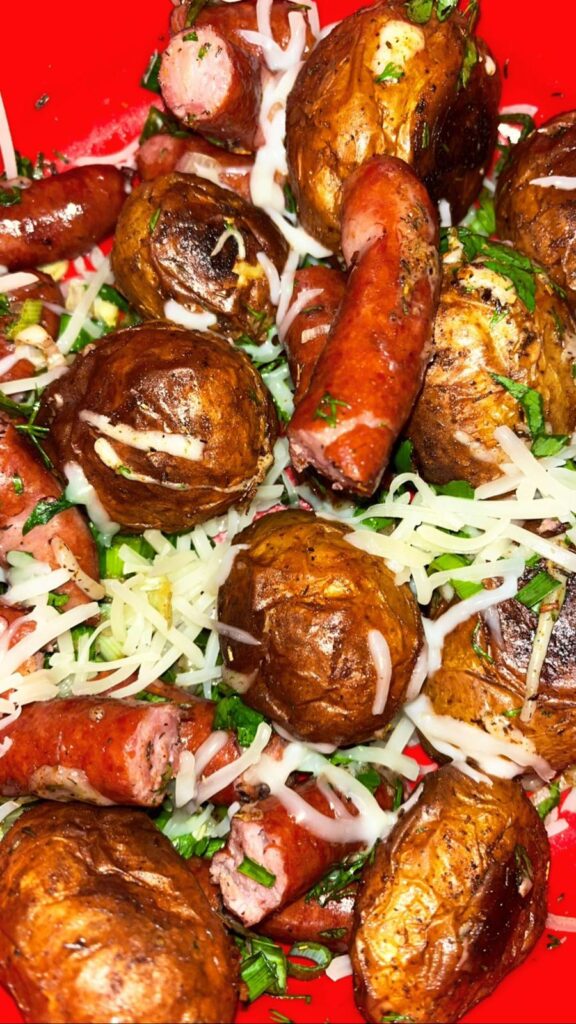 Îi așezăm în tava tapetată cu hârtie de copt și îi punem în cuptor, acoperiți cu folie de aluminiu pentru 30 de minute. Ulterior, scoatem tava și putem adăuga cârnăciori/bacon/șuncă presată etc. și mai lăsăm tava în cuptor încă 30 de minute, fără folie de aluminiu, la 180 de grade.