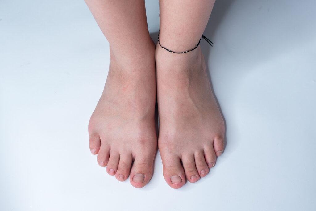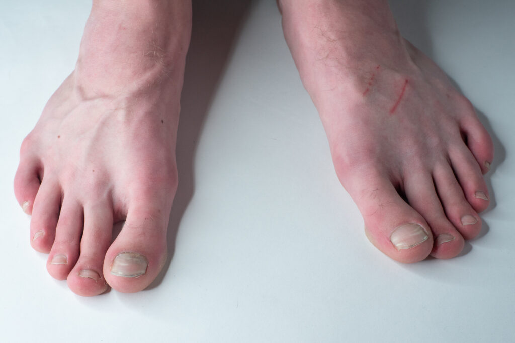 Laba piciorului roșie, degete mari și unghii pătrate
