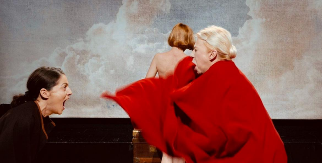 Desigur, ajută și frumusețea ezoterică și expresivitatea desprinsă dintr-un portret baroc ale Emiliei Bebu, cu gravitasul din ochii care ar fi putut, la fel de bine, să spună aceeași poveste și fără vreun suport textual. Are o dinamică impecabilă cu Florentina Țilea, care îl interpretează pe Agostino Tassi și face trecerea către diabolismul meschin al personajului prin fiecare inflexiune în voce, privire spintecatoare sau arcuire de sprânceană.