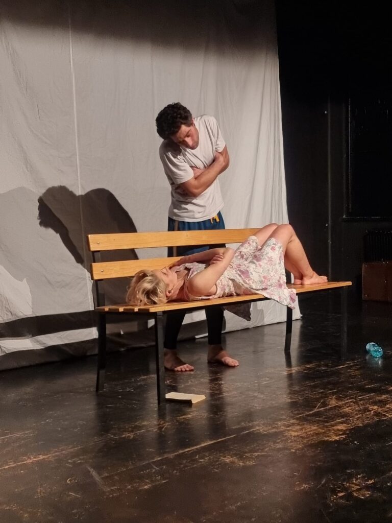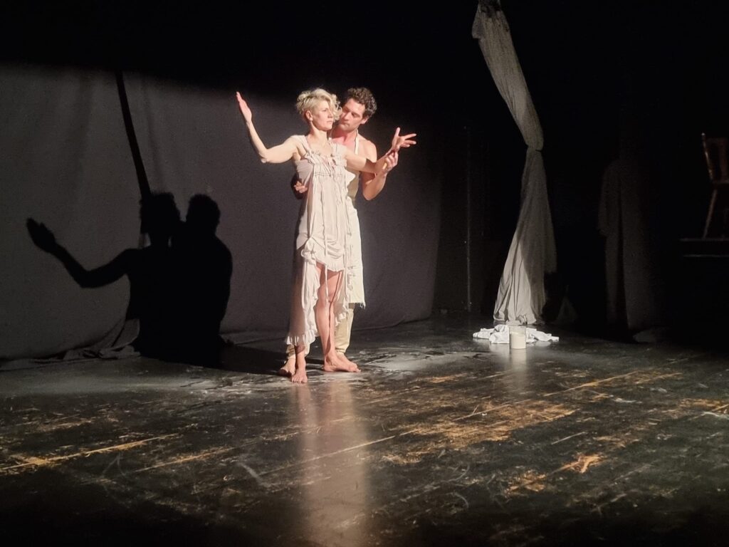 Spectacolul are în jur de o oră. Nu mai știu exact, timpul a zburat. Și gândul a zburat, când la Try a lui Pink! (și dansul violent al iubirii), când la Cold War (dacă nu ați văzut filmul, lăsați articolul și căutați-l pe o platformă) și la iubirea care transcende tot. Flavius și Lavinia ne-au trecut pe cei prezenți, în foarte puțin timp, prin majoritatea dramelor și plăcerilor, de la dorința ce mai de bază, poftă, dacă vreți, la degradarea cuplului și până la încercarea de re-creare a celuilalt, ca o statuie cioplită din piatră, căreia i se insuflă viață.