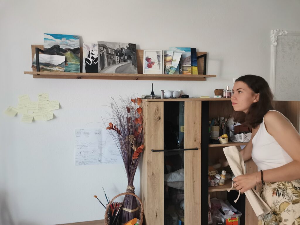 Legătura cea mai strânsă pe care ele o au acum cu războiul este prin familiile lor, care au ales să nu părăsească Odesa. Părinții le spun că totul este în regulă când vorbesc cu ele la telefon, deși fructele și legumele s-au scumpit de cinci ori și zilnic se aud alarme aeriene. Kate S. mi-a explicat că părinții ei sunt obișnuiți cu crizele, fiindcă au prins criza economică după ce a căzut URSS-ul, în anii ’90. Iar pentru bunica ei, care are 80 de ani, situația de acasă nu este ceva nou, fiindcă s-a născut în timpul unui alt război. Când și-au dat seama că nu mai pot rămâne în Ucraina, discuția dintre copii și părinți a fost una scurtă. Familia i-a încurajat să plece cât mai repede, fiindcă așa nu își mai făceau griji pentru ei. Au venit în România și au închiriat un loc la marginea Sibiului, prin programul 50+20, care încurajează proprietarii români să ajute refugiații ucraineni.