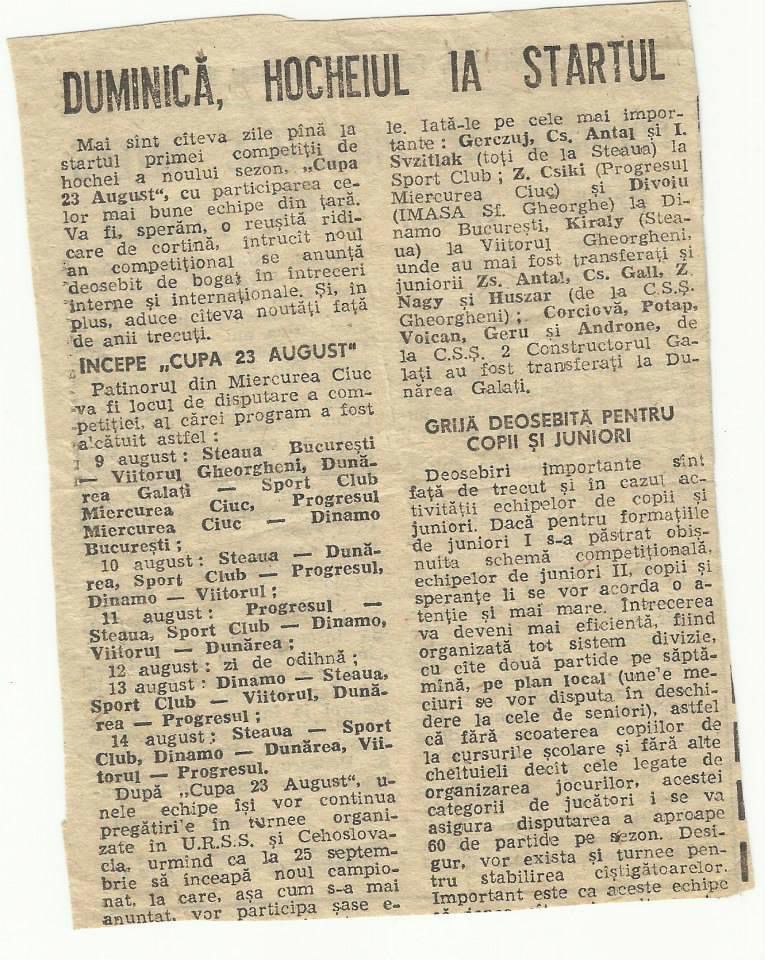 Începuturile hocheiului la noi datează din anul 1910, când a avut loc o încercare de a inaugura acest sport în București, însă nu a reușit să fie dusă până la capăt din lipsă de organizare. Câțiv ani mai târziu la Brașov, tineri emigranți întorși din Canada și Statele Unite au scos din bagaje și sportul învățat peste ocean și au început să îl practice săptămânal, iarna, pe lacul Noua. Nu a durat mult până când acesta a prins popularitate, jucătorii s-au înmulțit iar jocul a evoluat. Concomitent, în acea perioadă s-a format și o echipă de hochei la capitală, cea de la „Tenis Club Român”, unde aveau loc antrenamentele. În următorii ani au avut loc primele campionate, la acea vreme doar între cele două echipe ale Brașovului, Colțea și Brașovia, și cele două echipe venite de la sud, Tenis Club Român A și B. Miercurea Ciuc a început să își dezvolte propria echipă, în urma unui film prezentat la cinematograful orașului despre meciurile de hochei dintre Austria și Canada, care a stârnit un puternic interes în rândul spectatorilor. Pe de-a lungul timpului, multiple echipe de hochei au urmat să se formeze și campionate să fie disputate, astfel încât anul trecut Federația Română de Hochei a împlinit 100 de ani de la înființare.