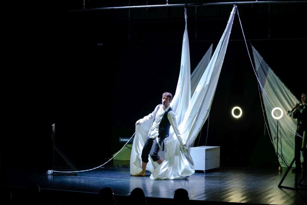 „Soția mea a murit acum ceva timp. Mai încerc de atunci să ies seara din casă, iar acum am ajuns aici. Cred că ne trebuie și teatru, să avem pe unde să ne mai zgâim.”, mi-a mărturisit un bătrânel care stătea lângă mine (nici nu mai contează că la nici cinci minute de la începerea spectacolului a părăsit sala, intenția sa a fost bună). Ca de obicei, eu ajung la evenimente atunci când se lasă cu și despre teatru, iar la BIAF am venit la timp pentru desfășurarea Competiției Comic 7B, un concurs de spectacole adunate din mediul artistic independent. Din păcate, din cei șase „concurenți” am reușit să văd doar trei, dar mă consolez cu gândul că, fiind un număr magic, poate să aducă cu o formulare de poveste: „Am petrecut trei zile și trei nopți”. Un punct comun am găsit în toate spectacolele văzute de mine aici; toate vorbeau despre iubire, dar în moduri diferite. În timp ce „Natură moartă cu nepot obez” arată o dragoste familială caracterizată de protecție excesivă, „H.A.O.S!- Păpușa, cerbii și Ceaikovski” are drept motiv central diferențele dintre femei și bărbați și cum acestea afectează relațiile de cuplu, iar „Novecento” este o poveste despre iubire prietenească, dar și pentru vocație și meserie.