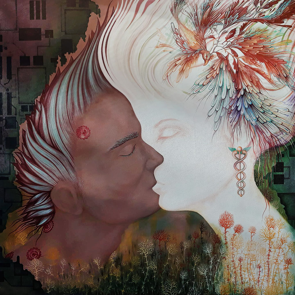 În caz că nu știați, atunci când consumi teatru la cină, de regulă este recomandat ca la prânz, sau ca gustare, să te delectezi cu ceva puțin mai ușor, dar plăcut. Astfel, pe timpul șederii mele la Buzău m-am bucurat de o expoziție de arte plastice, tot din cadrul festivalului, semnată de Ștefania Nistoreanu. Cunoscută ca fiind unul dintre primii artiști din lume care a vândut un tablou prin Bitcoin, tânăra a explorat în picturile viu colorate ale exhibiției „Equilibrium” umanitatea, de la relații familiale sau romantice, la credințe vechi sau suprarealiste.
