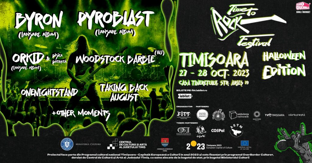Ediția de Halloween a festivalului Time to Rock Festival din Timișoara, unde se vor reuni mai mulți artiști precum Pyroblast, byron sau Orkid & alții