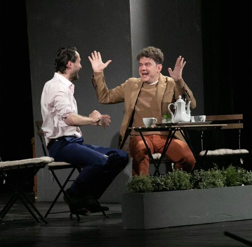 Ce-i drept, acțiunea în sine nu e ceea ce scoate spectacolul în evidență, ci dinamica și relațiile interumane. Pe măsură ce se toarce firul (narativ) întâlnim și celelalte personaje: prietenii lui Alex și ai Oanei. Manolis (interpretat de Vlad Zamfirescu) era un scriitor și scenarist prominent care fusese mai mult sau mai puțin excomunicat din cercul său de prieteni din pricina unui serial al cărui personaje fuseseră nu tocmai personaje și destul de mult persoane reale, cu toate replicile, manierismele și obiceiurile conexe. Totuși, încerca să își compenseze vinovăția cu privire la capturarea și comprimarea prietenilor în personaje bidensionale pe micul ecran prin curtoazii și amabilități triviale, care doar pictau imagina unei ipocrizii fără margini, mai mult decât a unui om care s-a căit față de prieteni. Căci prezența (sau mai degrabă absența) lui Manolis în conversațiile, și mai mult, în viețile prietenilor săi era fugitivă, ca o scânteie, iar el exista mai mult ca un martor ocular, luându-și notițe mentale pentru următoarea mare lovitură cinematografică.
