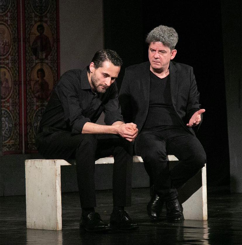 Spectacolul se termină într-o manieră încă mai tragică ca debutul (e de apreciat simetria) cu Manolis în conversație cu Alex pe o banca în fața bisericii la înmormântarea bătrânului.