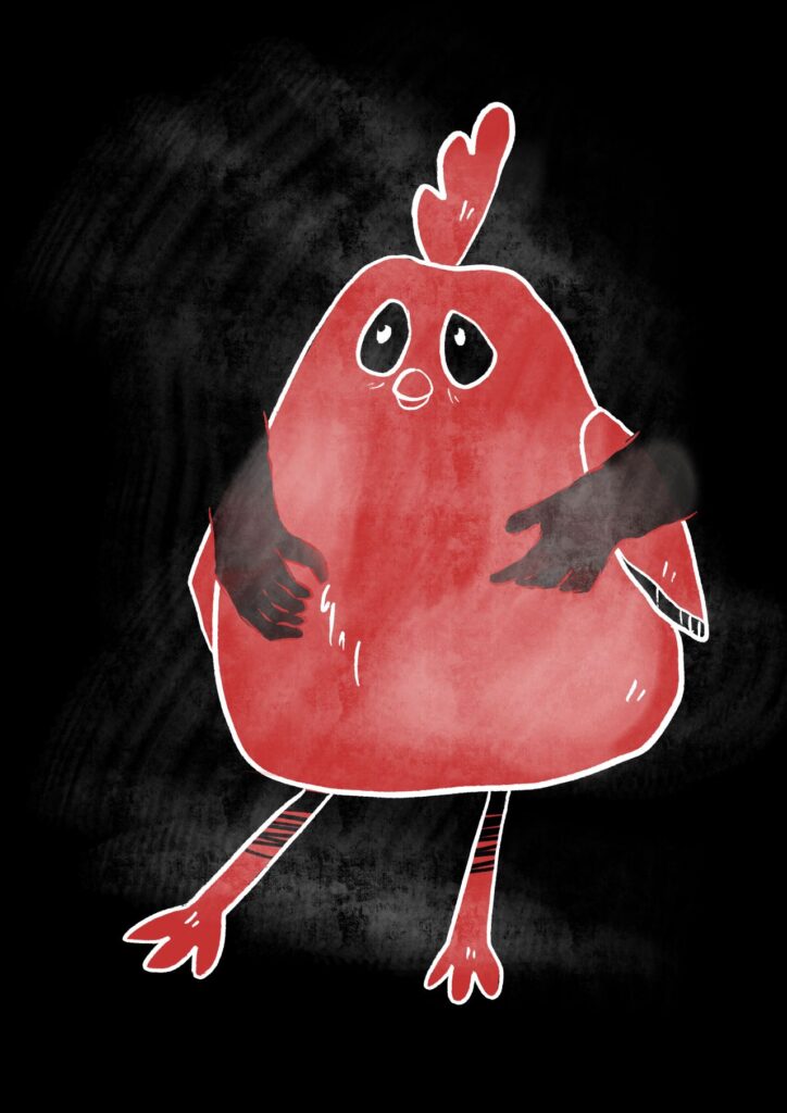 Era un pui de jucărie imens. Îmi plăcea că era aproape cât mine și că puteam să îl țin să dorm pe el.