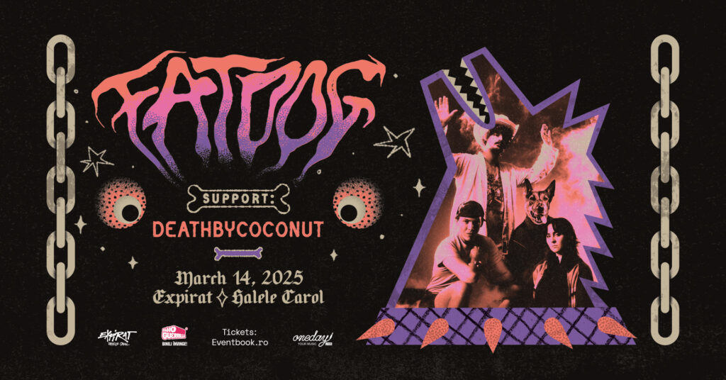 Noua senzație a scenei electro-punk londoneze, trupa 𝗙𝗮𝘁 𝗗𝗼𝗴 revine în România în primăvara lui 2025 și va concerta la București – vineri, 14 martie, la Expirat – Halele Carol, în turneul de promovare a albumului de debut, „Woof”, lansat recent.